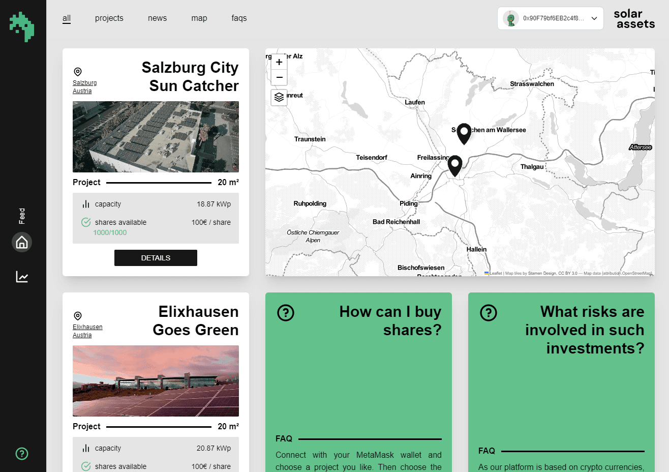 The concept in subtitle: You can (micro) invest in photovoltaic plants and get returns based on the shares and produced power of the PV modules.
